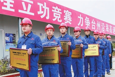 | 台州沿海高速为获得“建设美丽班组、创建品质工程”第三季度大比武班组颁奖。 |