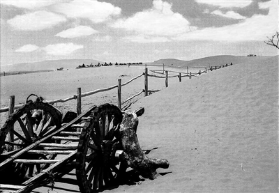 坐在车上颠簸摇晃了不知多久,只觉得太阳已经像一只晦涩的蛋黄斜挂在天空中的时候,我们才到达一个叫沙坡头的地方。沙坡头是国内著名的鸣沙山之一,也是濒临黄河的著名旅游景点。沿着沙坡头又往前走,一路上都是沙漠边缘的景象了。沙漠地带日夜温差大,白天的太阳照射下来让人难以承受,哪怕躲在树荫下,从身上冒出来的汗也很快会在衬衫上结出一片盐花。虽然车子里打着空调,但是还是感觉有热腾腾的热浪从车厢四壁压过来。导游说,腾格里沙漠最近几年加强植草防沙工作,生态环境比以前改善了很多。我们急切地问导游:腾格里沙漠景区到底还有多少路?导游顺手往车窗外一指:喏,腾格里沙漠就在前面了。