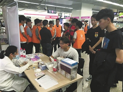 | 志愿者在地铁站内进行艾滋病防治知识宣传 |