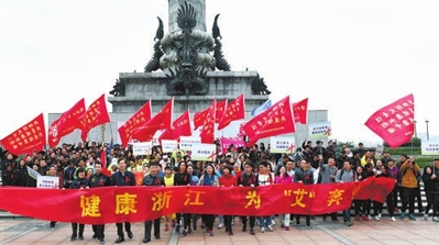 本报讯 记者周金友摄影报道 12月1日,是第30个“世界艾滋病日”。当日,由省总工会、省卫生计生委、省疾病预防控制中心等携手举办的2017年浙江省第30个世界艾滋病日宣传活动,在杭州滨江区钱江龙广场举行,来自全省各行各业的职工跑步爱好者,高举着健康浙江、为“艾”奔跑的红旗一路奔跑,宣传艾滋病防治知识,倡导艾滋病零歧视,践行健康生活方式。