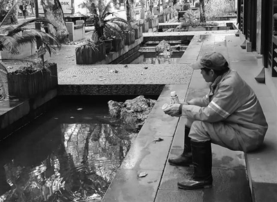 | 来自安徽阜阳的环卫工人吴师傅累了,就在路边坐一会儿喝口自带的热水,他最希望大家能理解为什么要及时清扫雨天地上的落叶。 |