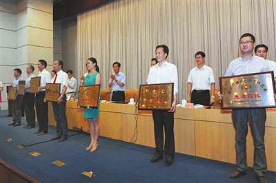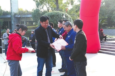 | 开发区党工委书记、主任徐元安为职工授奖 |
