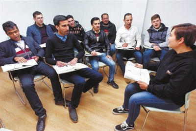图为12月20日晚,常驻义乌的外商在哈森外国语培训中心小班教学中一字一句学中文。