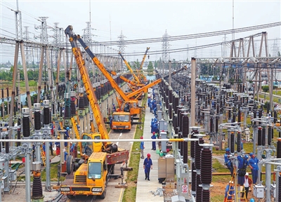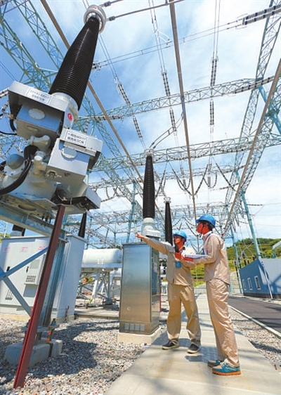 | 工作人员正在对宁波500千伏智能变电站 ——明州变投运进行巡检 |