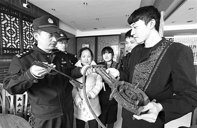 图为日前该分局路南派出所民警正在一家餐馆检查并宣传安全常识。