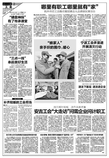“你月收入多少?”“平常有困难找工会吗?”“养老保险、职工医疗互助参加了吗?”……安吉县总工会开展的非公企业大走访活动以规上企业、企业工会组织、一线职工和农民工为重点,围绕“促进企业转型发展,促进职工有更多获得感,促进工会组织增强活力”。通过召开座谈会、个别谈心、问卷调查、专题调研等方式,每组走访50多家企业,目前,已完成213家非公企业大走访,召开座谈会250多次,回收问卷调查表2600多份,访谈对象达520多人次,收集到了大量来自基层工会、企业单位和广大职工反映的问题、困难和意见、建议。同时,开展“六个一”行动,即开展一次工会基层组织状况调查,一次走访了解农民工愿望和需求,促进一批企业创新发展,办好一批服务职工实事项目,体验一回职工生产生活,建设一批有实力有活力的工会组织。
