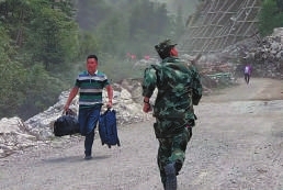 | 7. 逆行 2017年8月9日,在通往震区九寨沟神仙池的道路上,从震中撤出的大批群众突遇山体滑坡。一位女士不小心跑到了危险路段,进退两难,眼看就要摔倒。这时,武警四川总队某部战士张国全,逆向而行,将女子背回安全地带。 张国全:我们穿这身军装就该为人民服务。我当时也没想那么多,就一心想着冲过去救人。 |