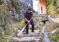 | 9. 耄耋老人义务扫村道36年 1922年11月出生的范美妹,是衢州市衢江区黄坛口乡黄泥岭村的长寿老人。因担心村道上的黄土路杂物多,老人小孩走路不当心会滑倒,她每天吃过早饭,就带着自制扫帚,花上半个多小时,将路面杂物清扫干净。这一扫就是36年。36年来,这位满头银发的老人一遍一遍地打扫着村道,无论严寒酷暑,即使大年三十也没有落下,用坏了100多把扫帚,却没有一句怨言,也没有向村里要过一分补贴。 范奶奶:扫帚用坏了,我会到山上捡些毛竹自己做,花不了多少精力。做一件事情就要做像样,不能偷懒! |