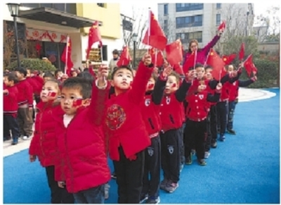 在2017年末,一场主题为“龙腾虎跃迎新年”的亲子运动会在杭州绿洲花园幼儿园文晖园区举行。运动会正式开始前,2017年新入园的孩子们统一身着喜庆的红色唐装,手中挥舞着五星红旗,在庄严的国歌声中,接受了人生第一次爱国主义教育,让这一抹绚丽的红色从此在孩子们心中扎根。记者胡翀