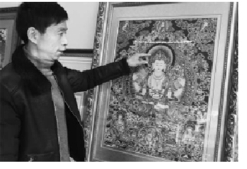 通讯员连国庆 记者羊荣江报道 用金属丝,勾勒出“观音”“莲花”“祥云”等纹样,慢慢地粘接在木板上,再用彩砂一点点地进行填充……一年的时间,一块普通的木板,经过杭州阳光工艺大舞台老师江秋义之手,《四臂观音》完工了。