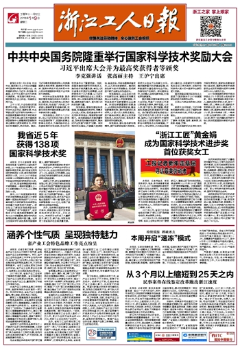 “浙江工匠”黄金娟 成为国家科学技术进步奖 首位获奖女工