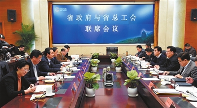 | 昨日,省政府与省总工会举行联席会议。 记者周金友 摄 |