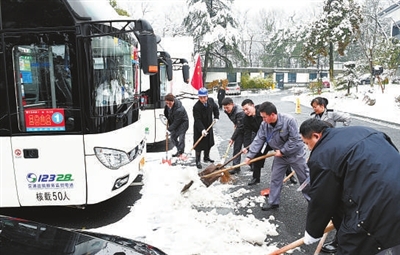 昨天上午,在省政协委员驻地之一的杭州三台山庄,工作人员正在清扫道路上的积雪,确保参会车辆通行无阻。连日来,山庄职工日夜清扫路面的积雪,做好各种防冻、防滑工作,为省两会的顺利举行做好强有力的保障工作。记者周金友 摄影报道