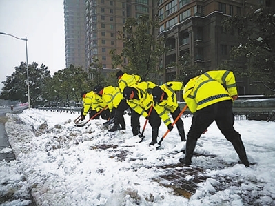 本报讯 记者胡翀报道 1月27日,湖州市气象台将暴雪黄色预警信号升级为暴雪橙色预警信号:1月28日有中到大雪山区暴雪,有严重积雪,29日持续严重冰冻。按照湖州市委、市政府部署,湖州市公安机关迅速动员,全体民警、协辅警于1月28日7点30分许全部到岗到位,万名警力奔赴全市各主要路段、桥梁等地参与积雪清扫、交通疏导,全力确保道路安全畅通,全力保障群众生命财产安全。