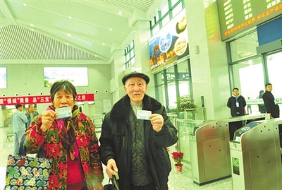 | 两位常山老人第一次乘坐高铁心情十分激动 |