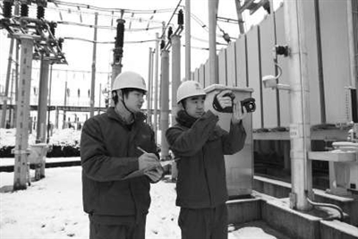 近日,杭州持续开启“冷冻模式”,最低气温达到零下3℃。连续的雨雪冰冻天气,使得用电负荷大幅攀升,对电网的可靠供电提出了挑战。为保障电力客户用电无忧,供电公司应用先进技术及仪器,加强设备巡视检查。在杭州萧山220千伏宁围变电站,变电运维人员踏雪前行,手持红外成像仪对站内的各个设备进行测温,密切关注设备运行情况,一旦发现潜在隐患,及时进行处理,守护万家温暖。徐国锋 姚靖霖