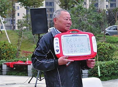 但这并不妨碍他巡河和反映问题。这个“无声”河长,用另一种方式为治水发声。遇到要开口时,他就拿儿童写字板沟通,发现水质问题他就用文字形式或手机微信及时反映给有关部门。