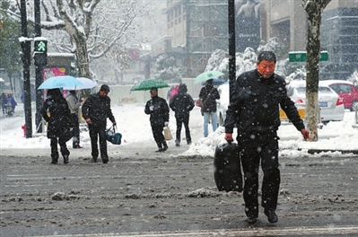 | 2011年1月20日,铁路杭州城站外,一位买不到回乡过年车票的民工在漫天风雪中茫然行走。 |