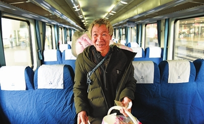 | ② 昨天上午,在杭州江宁路地铁工地打工的云南籍民工周长贵肩负重担,被铁路工作人员看见后,照顾提前进站(图①),顺利地登上了返乡列车后,满脸笑容(图②)。周长贵欣喜地说,春运的路一年比一年好走了。 |