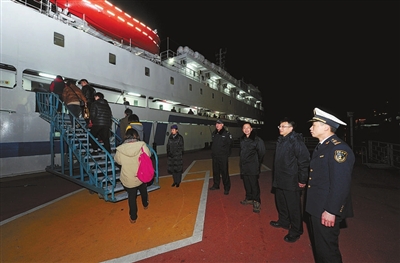 “船长新年好!这么早开航,你们一定要注意安全,加强值班瞭望,千万不能疲劳驾驶啊!”大年三十,原本与家人团聚的日子,凌晨的普陀山客运码头挤满了人群,往来的客船一班接一班,繁忙的水上客运带来了巨大的安全监管压力,让人一刻都不敢放松。