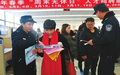 春节长假过后,大量外来务工人员陆续返回城市找工作。对此,台州市公安局椒江分局区西派出所民警到辖区人才招聘市场,通过发放宣传资料、摆放宣传展板、现场讲解等方式,提高外来务工人员防骗能力。