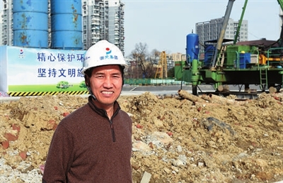 | 2月27日,程泰德在位于杭州北大桥的一处建筑工地上,满脸阳光。记者周金友 摄 |