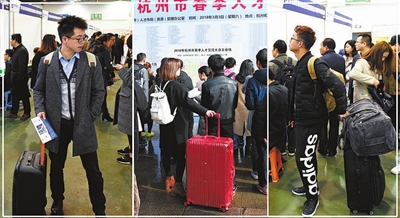 3月3日,由杭州人才市场主办的“2018年杭州市春季人才交流大会”,让杭州又火了一把。杭州近千家综合性集团公司、上市公司、国有企业、三资企业,国家、省、市级高新技术企业等,推出各类岗位25000个,现场人山人海的求职者中,超过一半来自外地,其中有人是推着行李箱从机场、火车站直接赶到招聘会现场。一位来自内蒙古,已经有3年工作经历的研究生说,这次来杭州求职,就没打算离开,还幽默地加了一句:不怕杭州房价高,房子都是奋斗出来的。