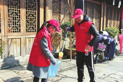 3月3日,暖阳拂照下的题扇桥吸引了众多市民和游客前来游览。中国银行绍兴市分行志愿服务队的志愿者们清洁古桥环境,宣传护桥常识,引导市民关注古桥,共护古桥。以实际行动践行雷锋精神,建设美丽绍兴,为绍兴的古桥文化打CALL。李莎文 谢丹 摄