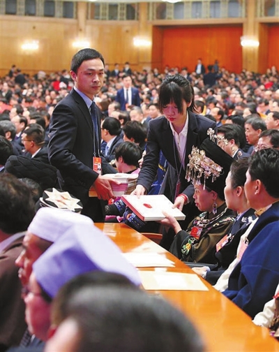 | 3月18日,十三届全国人大一次会议在北京人民大会堂举行第六次全体会议。这是工作人员在发票。新华社记者姚大伟 摄 |