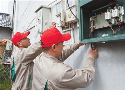 党员们在村干部的带领下挨家挨户给村民们送上《习近平新时代中国特色社会主义思想学习手册》、《实施乡村振兴战略宣传资料》和分类垃圾袋。两名专业电工给村民检修用电线路。通过党建共建活动,助推乡村振兴,助力新农村建设。