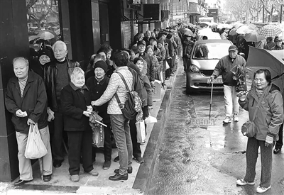 日前,邻近杭州抚宁巷公交站的江城路上,附近社区几百位老人在绵绵春雨中排起了长长的U字形队伍。原来,当日有关部门为解决70周岁以上老年人持有的老年免费乘车卡每年需要年检的问题等,开通现场驻点服务。