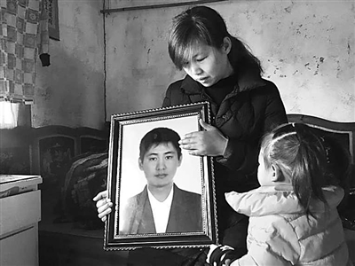 | 手捧亡夫遗像的蔡林平和女儿。 |