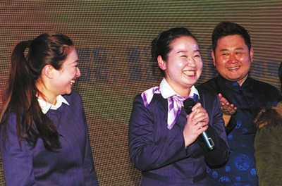 2013年2月5日,在省总工会为春节留守岗位的各行各业职工举办的迎新文艺演出现场,即将奔赴春运征途的铁路职工发自内心的欢笑(图①),灿烂至今。