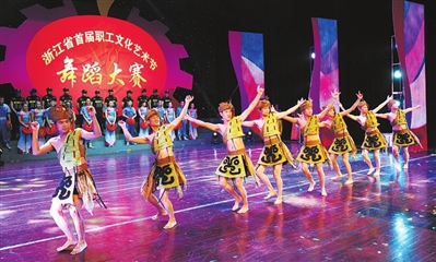 2013年,省总工会接连举办了首届职工文化艺术节(图⑤),首届全省岗位大练兵技能大比武活动(图⑥);全国总工会、国际劳工组织在杭州举办了海外务工人员权益保护与工会作用研讨会(图⑦);全省工资集体协商三年规划成果展暨经验交流会,图文并茂地展示了全省工会开展工资集体协商取得的工作成果(图⑧);在省总工会的指导下,各级工会为广大环卫工人免费体检(图⑨);为青年职工举办集体婚礼(图⑩)……各项工会工作开展得红红火火,有声有色!