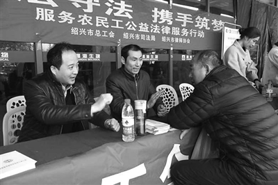 日前,绍兴市总工会的公益法律服务队来到滨海新城浙江医药昌海生物工业园,开展“尊法守法 携手筑梦”服务农民工公益法律服务行动,面对面向农民工宣传、普及劳动法律知识以及“娘家人”能提供的相关服务。由绍兴市总工会法工部工作人员、公益律师所组成的服务队耐心解答了农民工关心的关于劳动合同、劳动保障、工伤认定、工资支付等方面的问题。活动当天共发放《中华人民共和国民法总则》《职工普法手册》《浙江省工会劳动法律监督条例》等书籍和职工医疗互助保障等方面的宣传资料300余份。活动还邀请了绍兴爱尔眼科的医护人员免费为农民工提供了眼科检查、眼镜修理等便民服务。记者胡翀 摄影报道