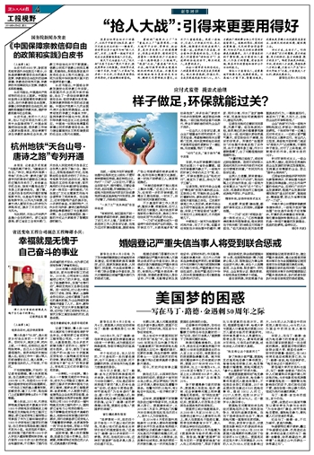 谭小兵说,2011年,代表世界特高压输电技术最高水平的1000千伏皖电东送淮南至上海特高压交流输电示范工程开工建设,浙江省送变电工程有限公司承担了作为工程终端站浙北1000千伏变电站工程项目的建设,自己受命在现场组建工程技术攻关小组。他攻克技术难关,成功实施了国内首例1000千伏人字柱大截面钢管构架安装、省内首例1000千伏GIS封闭式组合电器安装,不仅填补了国内在此领域的技术空白,也为浙江送变电争得了荣誉和地位。