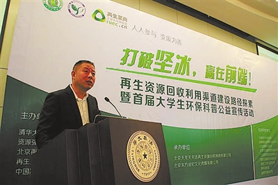 | 羊军在清华大学宣讲复合包装回收再利用。 |