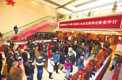 邵钦培表示,花园红木家具城市场不惜重金举办展销会以回馈经销商和消费者,就是要让大家在购买红木家具的同时收获意外惊喜,进而为广大经营户吸引更多更大的客流量。虽然展销会开幕式在4月20日上午举行,但市场回馈活动提前拉开序幕,持续6天半的“黄金周”时间,也足以让所有想购买红木家具的客商有充分的时间及时下单。