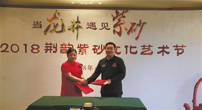 4月15日,荆韵文化“当龙井遇见紫砂·2018”在杭州举行。活动现场,荆韵文化与中国—东盟博览会签署合作协议。此次合作,标志着荆韵紫砂将大步走出国门,走向世界,展现东方文化的翰墨风雅与传统工艺的匠心精髓。根据协议,荆韵紫砂将作为第15届中国—东盟博览会的国礼,赠送给各国领导人、嘉宾。