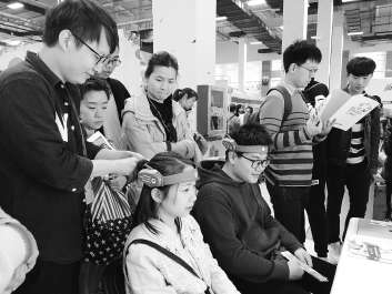 图为读者在杭州市第七人民医院展位前接受免费测试,以了解如何舒缓压力。