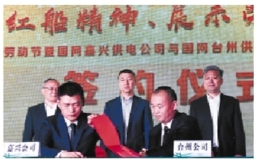 昨天,国网嘉兴、台州供电公司劳模创新工作室结对共建签约仪式,在国网桐乡供电公司举行。桐乡公司检修工区带电作业班班长钱栋(图左)等两地十家劳模创新工作室带头人,现场签约结对共建,并共同为千人比武强技能、红船铁军战擂台活动擂响战鼓,表达在红船精神引领下再创辉煌的决心,唱响劳动光荣、工人伟大的主旋律。