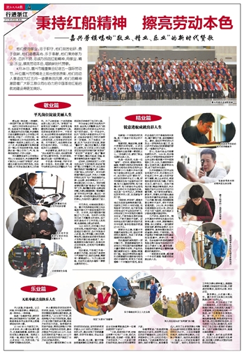 他们爱岗敬业、忠于职守,他们刻苦钻研、勇于创新,他们道德高尚、乐于奉献,他们秉持敢为人先、百折不挠、忠诚为民的红船精神,用敬业、精业、乐业,擦亮劳动本色,唱响新时代赞歌。