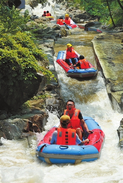 5月13日,2018年浙江省漂流节暨杭州青龙峡启漂在杭州富阳区方里村隆重举行。杭州青龙峡漂流,全长3.2公里,总落差70米,最大落差6.5米,沿途飞龙入海、水漫金山、水帘洞、蛟龙戏水等主题景点为激情漂流增添了许多乐趣。近几年浙江漂流发展很快,已发展有200多家漂流点,成为华东乃至全国的漂流大省,漂流活动为浙江的乡村旅游作出了巨大的贡献。夏之明 摄