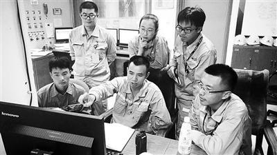 图为基地生产员工正在学习数字库区终端模块上线测试。