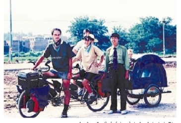 阿兰在法国是名消防队员,时年39岁;妻子西尔维亚是名护士,时年41岁;而儿子当年才4岁。婚后他们计划环游世界,为此专门定制了一辆双人式脚踏车。从1985年开始,他们先后骑车游历了欧洲、非洲、美洲、亚洲的29个国家,行程7万公里。每次旅游回家后,他们要将游历写书出版。夫妇俩在旅行的同时,还为法国的报刊、图片社提供各国的风土人情照片及文章。1998年的这次环游回法国后,他们将在中国的游历作为一本书的一章,其中就收录了永康市公路建设内容并配图。