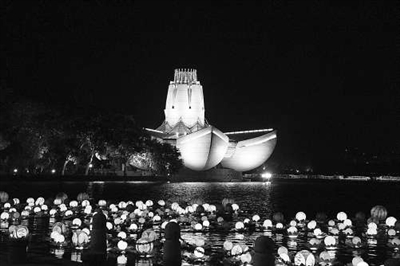 | 平湖东湖上的西瓜灯。缪宇光 摄 |