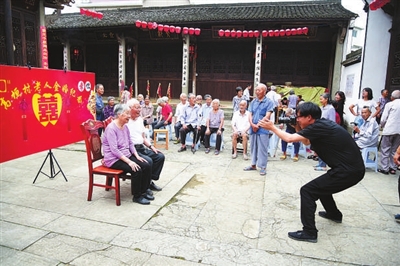 近日,建德市大洋镇高垣村为全村30对婚龄在50年以上的夫妇举行“爱的记忆”金婚纪念活动,邀请摄影师为他们免费拍照留念,记录老人们的幸福瞬间,送上一份美好祝福。宁文武 摄