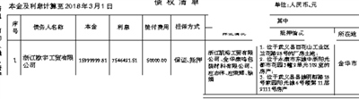 债务人为浙江欧宇工贸有限公司,债权本息为人民币23546421.32元,其中本金15999999.81元,基准日为2018年3月1日。