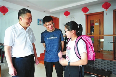 本报讯 毛朝阳、毛彩霞报道 5月26日,周六。衢州市总工会党组书记、常务副主席徐雄强率工会工作人员,带上书包和购书卡等慰问品,来到困难职工家里向他们的子女送上节日的问候。