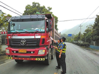 图为路政人员向过往司机发放宣传资料。胡跃文、施正友 摄